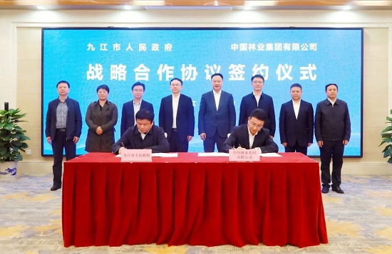 4月24日下午,中國林業(yè)集團有限公司與九江市人民政府在九江市武寧縣簽署戰(zhàn)略合作協(xié)議。中林集團黨委書記、董事長余紅輝,九江市委書記劉文華出席并見證簽約。中林集團黨委委員、副總經(jīng)理翁文林參加活動。中林(江西)林業(yè)投資開發(fā)集團有限公司董事長、總經(jīng)理柳志偉與九江市副市長容長貴分別代表雙方簽署協(xié)議書。根據(jù)戰(zhàn)略合作協(xié)議,雙方將充分發(fā)揮各自資源優(yōu)勢,在九江市建設國家儲備林基地200萬畝以上,并圍繞生態(tài)產(chǎn)品價值實