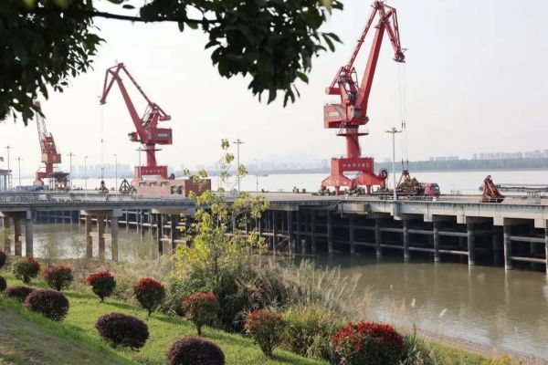 深秋的中林華中港碼頭水清岸凈,景色迷人。遙遙望去,岸線上栽植的喬灌木,不同于春夏的滿目蔥蘢,樹葉的深紅、金黃勾勒出碼頭秋韻的五彩斑斕,形成四季皆有景,四季景不同的生態(tài)畫卷。