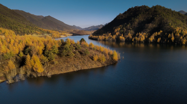 秋天的湖面似鏡,宛如一幅富有詩意的畫卷。落葉松在風(fēng)的吹拂下逐漸改變顏色,從翠綠到金黃,季節(jié)就像調(diào)色板,在山野上演一場只屬于秋天的視覺盛宴。