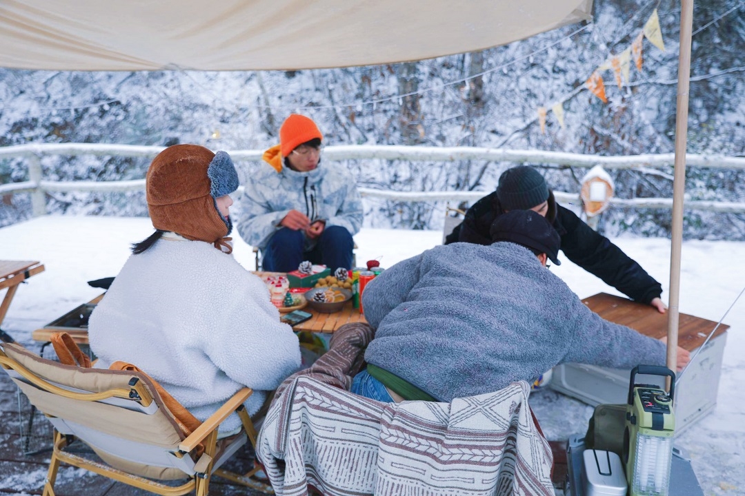 山上結(jié)團滑雪,山間露營燒烤