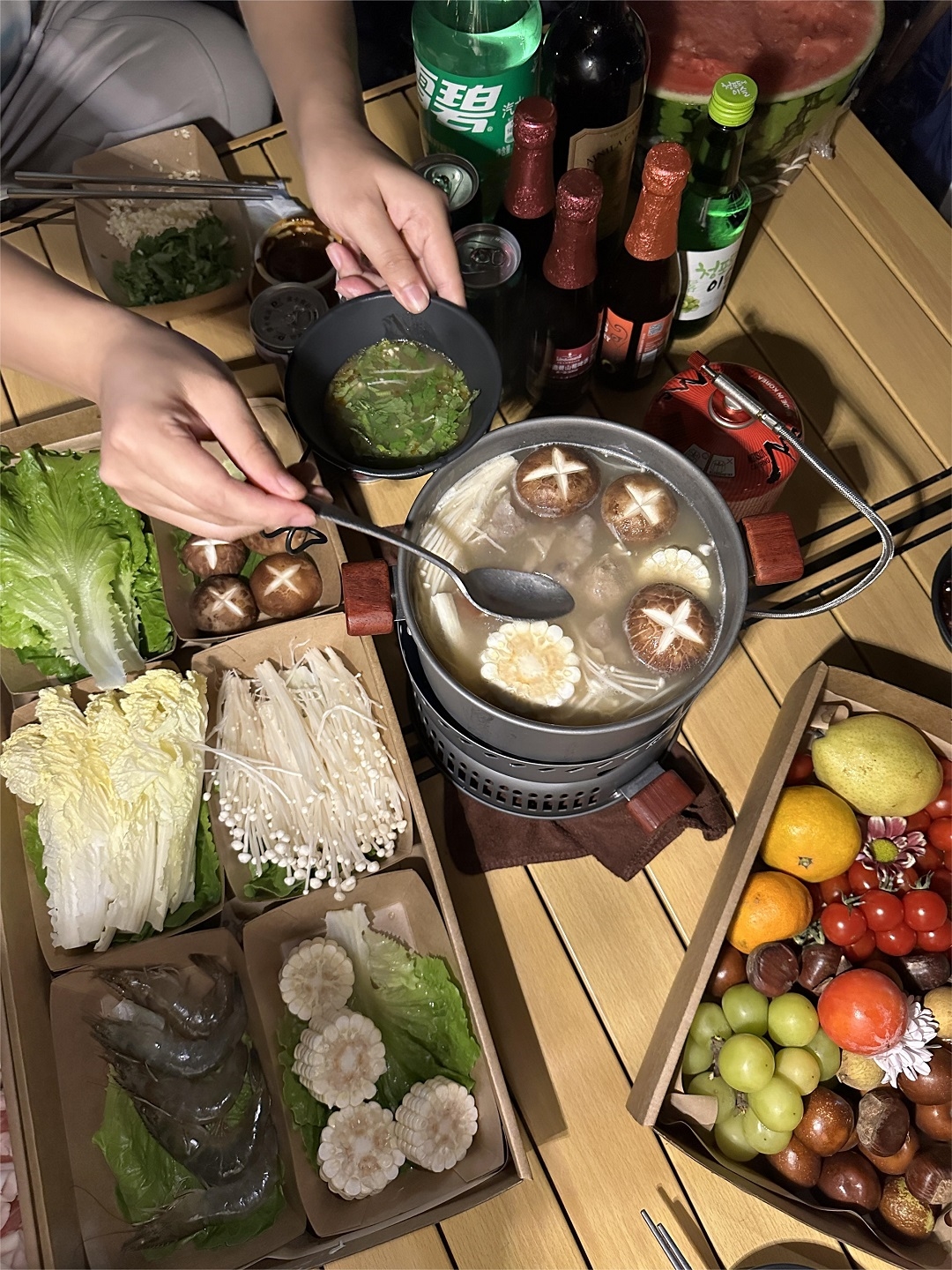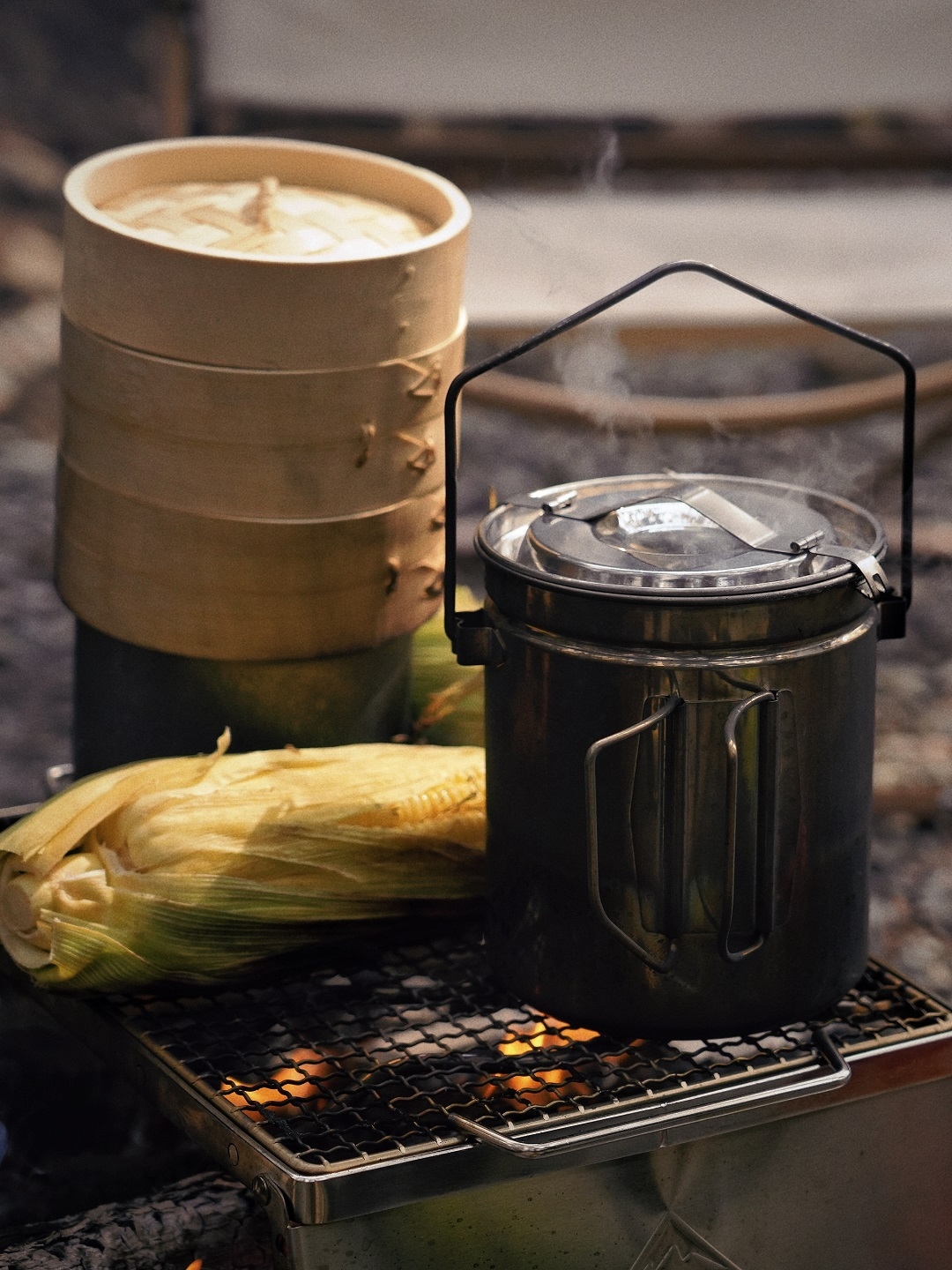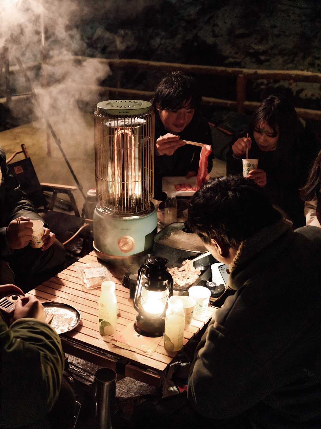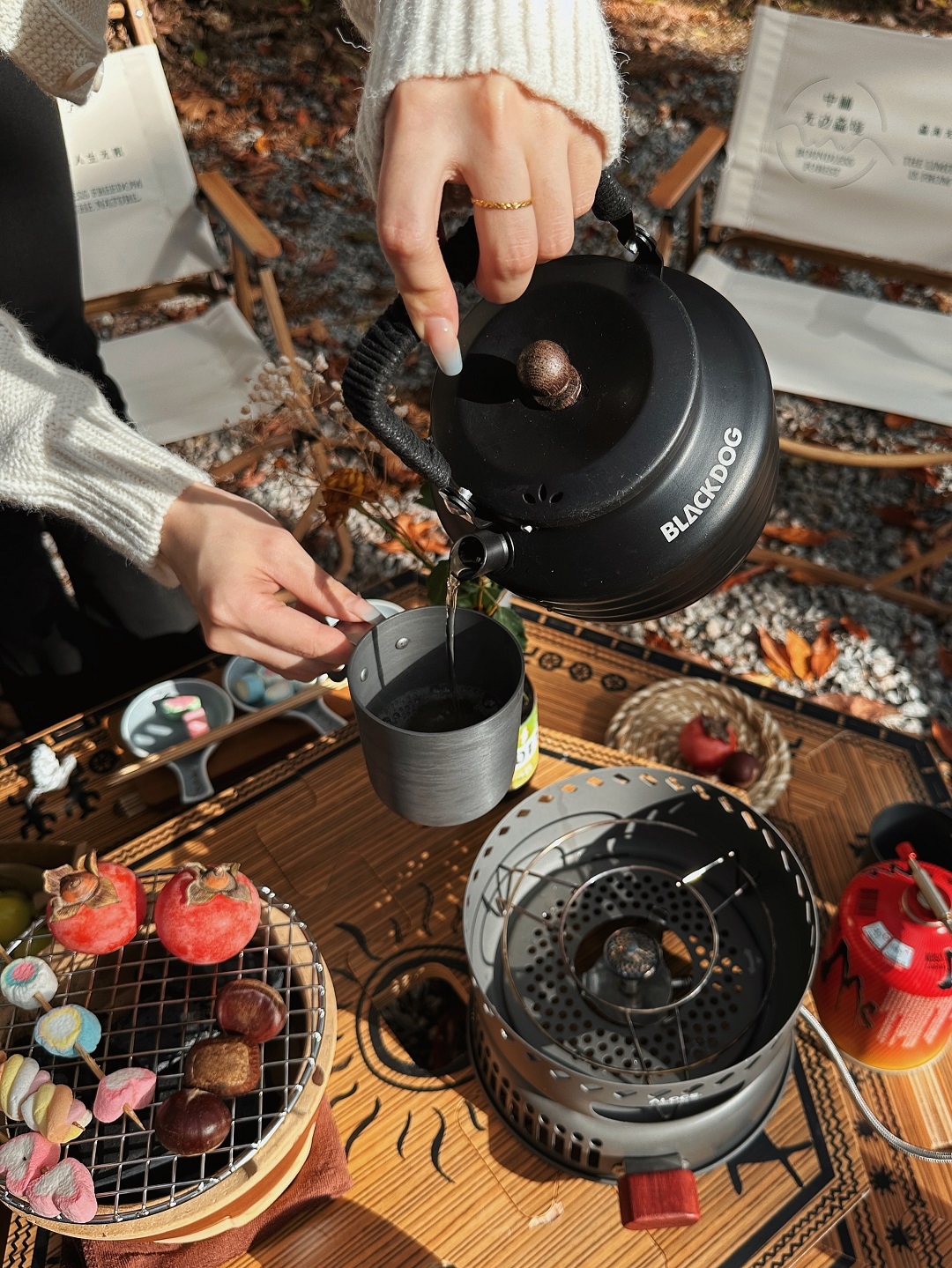 燃起炭火,燒烤烹茶,對飲小酌