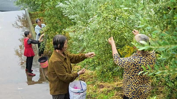 群山之間,秋雨婆娑,村民們正忙著采摘橄欖果,山間不時(shí)回蕩著歡聲笑語。