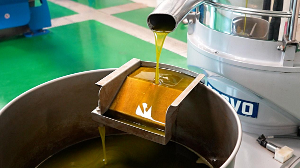 一筐筐果子很快被送到基地的橄欖油加工廠。這些寶貝“疙瘩”要在摘下的24小時(shí)內(nèi)進(jìn)行冷榨加工,橄欖油的品質(zhì)才能得到保證。