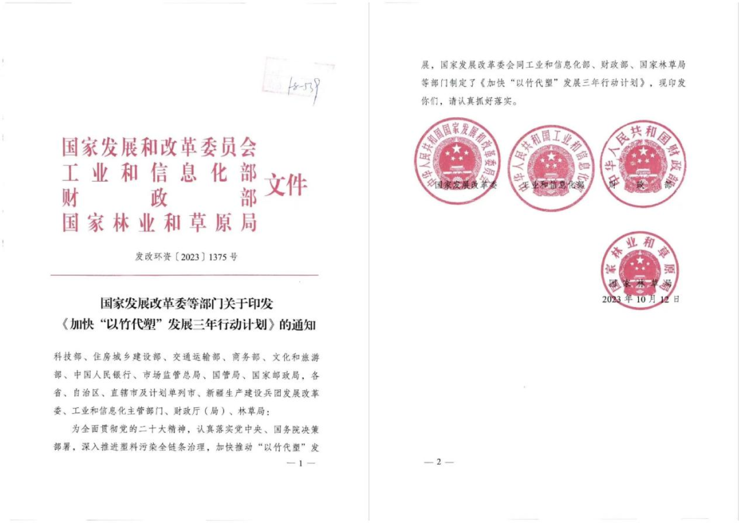 國家發(fā)展改革委等部門關(guān)于印發(fā)《加快“以竹代塑”發(fā)展三年行動計劃》的通知