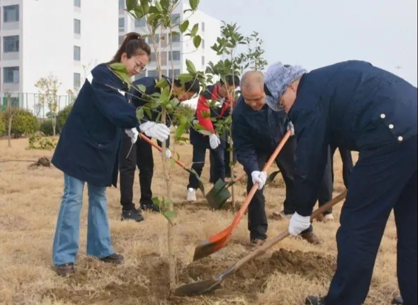活動現(xiàn)場,大家熱情洋溢、干勁十足。四人組隊,默契配合。揮鍬鏟土、扶苗填坑、踩土定植、圍堰澆水,每一道工序都一絲不茍。“來,我來扶樹苗,你負責填土!”“這棵樹要扶得再直一些!”大家分工明確,互相協(xié)作,經(jīng)過一番努力,50余株大葉女貞整齊排列,在春風中舒展身姿,煥發(fā)出勃勃生機。通過參與此次義務植樹活動,每一位參與者也在心中種下了一片“綠地”,更加堅定在日后的工作和生活中積極踐行綠色低碳生活方式,增強保護生態(tài)環(huán)境、建設美麗家園的責任感與使命感。