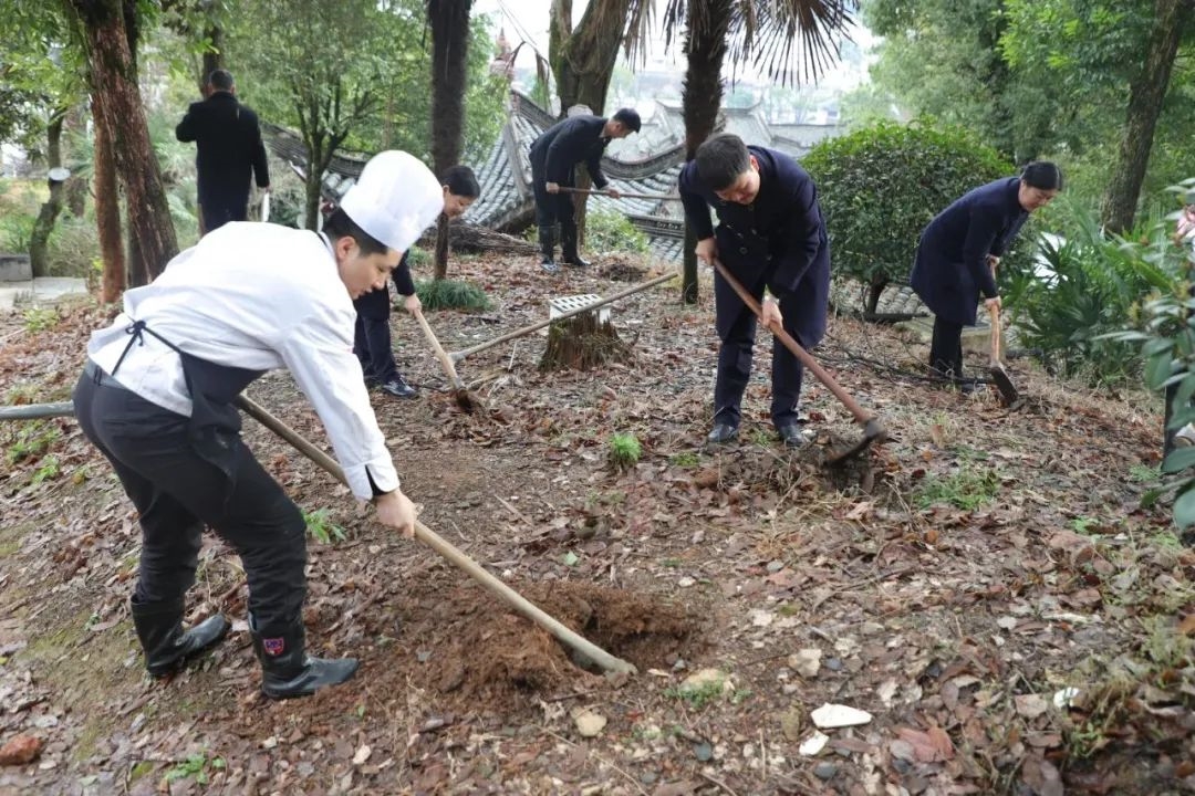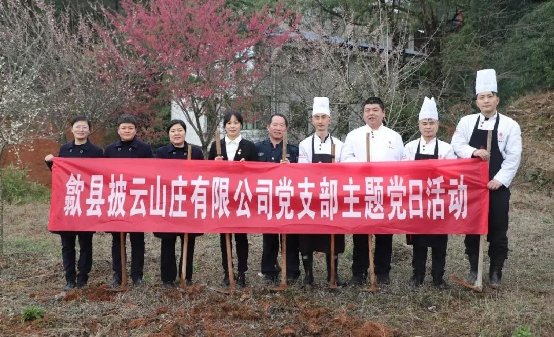 近日,歙縣披云山莊有限公司黨支部組織全體黨員、積極分子開展“‘植’此青綠,共‘樹’未來”主題黨日活動。