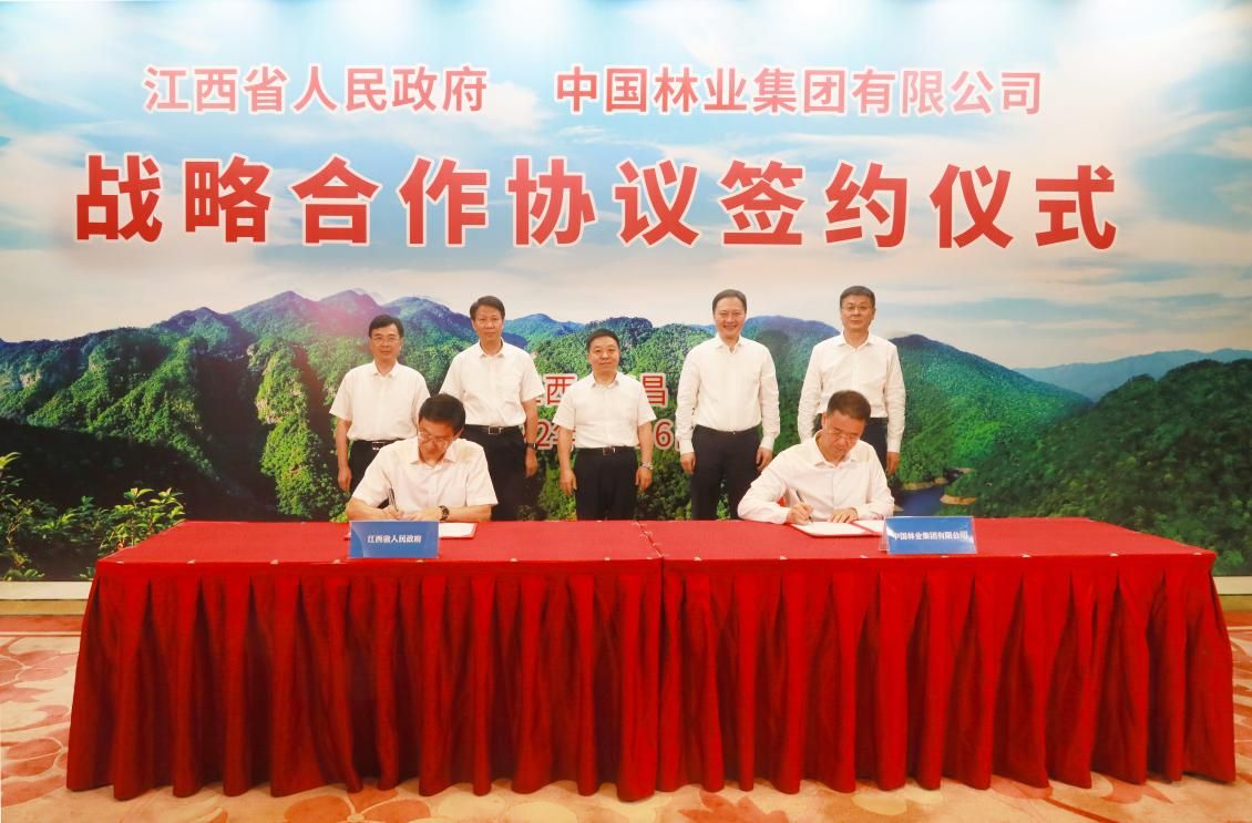 會(huì)談后,雙方舉行了簽約儀式。根據(jù)協(xié)議,雙方將充分發(fā)揮各自?xún)?yōu)勢(shì),以國(guó)家儲(chǔ)備林建設(shè)、林業(yè)產(chǎn)業(yè)發(fā)展為主要抓手,重點(diǎn)在碳匯開(kāi)發(fā)和交易,油茶種植和加工,竹纏繞技術(shù)加工利用和推廣,重型木結(jié)構(gòu)加工利用,生物質(zhì)能源開(kāi)發(fā)等方面開(kāi)展合作,共同助推江西現(xiàn)代林業(yè)產(chǎn)業(yè)示范省建設(shè),更好實(shí)現(xiàn)生態(tài)美、百姓富、產(chǎn)業(yè)興的有機(jī)統(tǒng)一,提升林業(yè)在經(jīng)濟(jì)社會(huì)發(fā)展中的貢獻(xiàn)率。