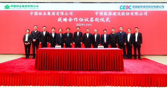 1月4日,中國林業(yè)集團(tuán)有限公司與中國能源建設(shè)集團(tuán)有限公司在京簽署戰(zhàn)略合作協(xié)議。中林集團(tuán)黨委書記、董事長余紅輝,中國能建黨委書記、董事長宋海良出席并見證簽約。中林集團(tuán)黨委委員、副總經(jīng)理黃其正,中國能建黨委常委、副總經(jīng)理吳云分別代表雙方簽署合作協(xié)議。