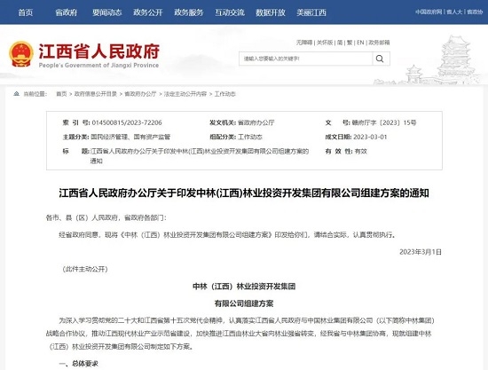 為推動(dòng)江西現(xiàn)代林業(yè)產(chǎn)業(yè)示范省建設(shè),加快推進(jìn)江西由林業(yè)大省向林業(yè)強(qiáng)省轉(zhuǎn)變,近日,江西省人民政府辦公廳印發(fā)了《中林(江西)林業(yè)投資開發(fā)集團(tuán)有限公司組建方案》。