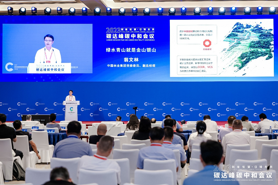 在2023碳達峰碳中和會議上,中國氣候變化事務(wù)特使解振華,博鰲亞洲論壇原秘書長、原國家外經(jīng)貿(mào)部副部長龍永圖等通過現(xiàn)場或視頻方式出席論壇并致辭。中林集團黨委委員、副總經(jīng)理翁文林應(yīng)邀參會,并作題為《綠水青山就是金山銀山》的主旨演講。