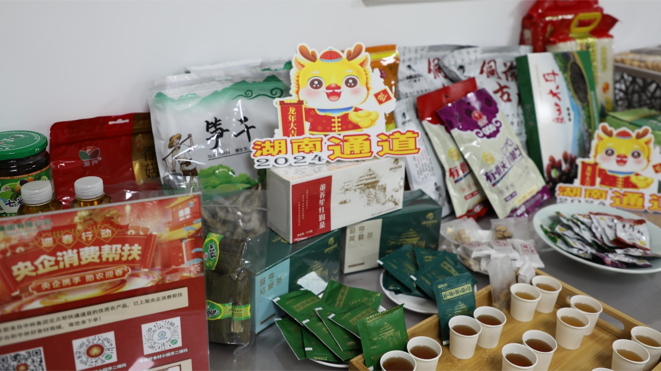 活動(dòng)現(xiàn)場喜樂祥和、氣氛熱烈,來自通道縣的年貨產(chǎn)品種類豐富,筍干、香菇干、牛肉干、甜藤粑粑、紅潤茶等特色農(nóng)產(chǎn)品一應(yīng)俱全,吸引許多員工駐足觀看,大家積極品嘗、挑選、購買,起到了良好推廣效果。
