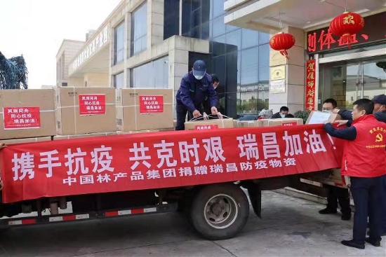 近日,在中林華中國際木業(yè)家具產(chǎn)業(yè)園區(qū)門口,一輛掛著“攜手抗疫 共克時艱 瑞昌加油!”紅色橫幅的物資車輛,顯得格外醒目,這是一輛從北京到瑞昌跨越千里、滿載著林產(chǎn)品公司深厚情誼的防疫物資運(yùn)輸車。