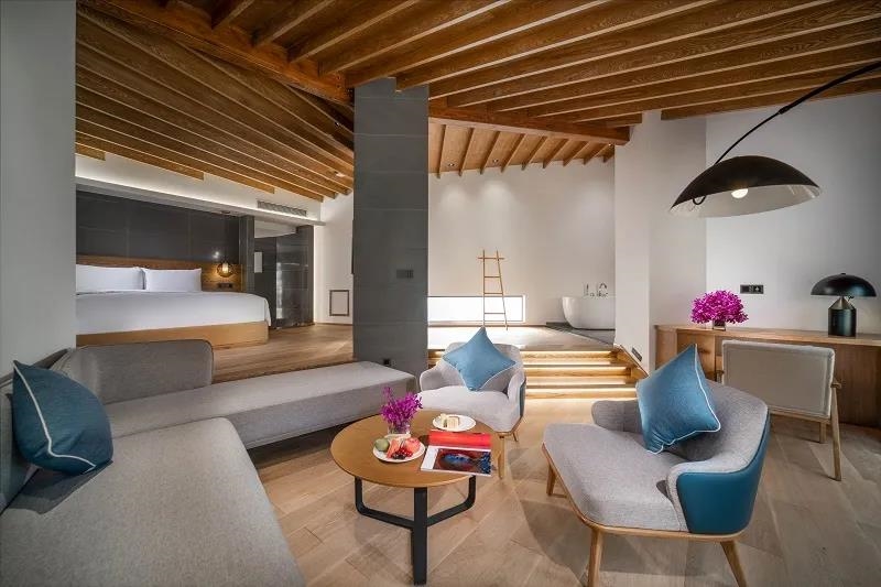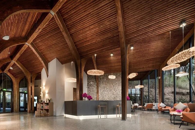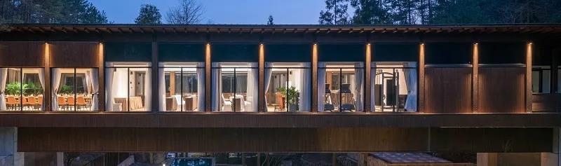 森林木屋是度假區(qū)內(nèi)集住宿、休閑、會議、休養(yǎng)及體驗為一體的高端度假酒店,共36棟單體建筑,建筑面積達到5000多平方米。建造初期,就注重將綠色、生態(tài)、環(huán)保等理念融入酒店的各個方面,在采光、外墻及屋面建筑、管道設計等環(huán)節(jié)充分體現(xiàn)了低碳節(jié)能的相關技術。