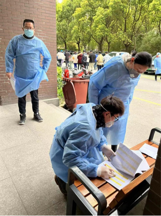 上海國林勝通公司員工王鵬所在的小區(qū)發(fā)現(xiàn)確診病例,實行“7+7”隔離管控。該小區(qū)是一個居住著8000多人的大型社區(qū),防控人力吃緊,管控難度大。本著一顆熱心腸,王鵬第一時間響應(yīng)居委會號召,穿上防護服,變身“大白”,加入到志愿者隊伍當(dāng)中。