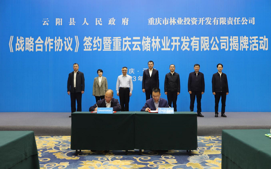 4月3日上午,重慶市林業(yè)投資開發(fā)有限責任公司與云陽縣人民政府簽署國家儲備林建設(shè)《戰(zhàn)略合作協(xié)議》,并現(xiàn)場舉行了“重慶云儲林業(yè)開發(fā)有限公司”揭牌、授印儀式。重慶市林業(yè)局黨組成員、副局長王聲斌,重慶林投公司黨總支書記、董事長羅廉,云陽縣委書記覃昌德,云陽縣委副書記、縣長李茂濤出席簽約儀式,縣委常委、常務(wù)副縣長甘露主持簽約儀式。