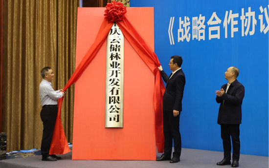 (圖:王聲斌與覃昌德共同為重慶云儲林業(yè)開發(fā)有限公司揭牌)