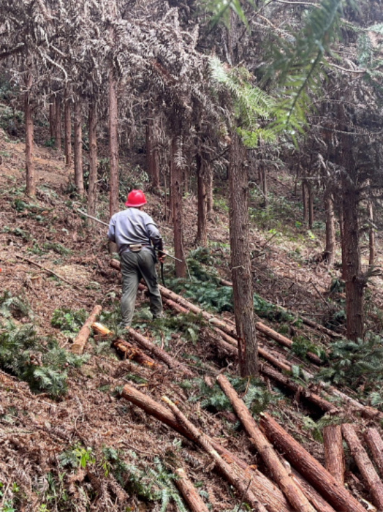 各林場分公司以落實(shí)主責(zé)主業(yè)為抓手,以持續(xù)提升森林質(zhì)量為核心,以提高企業(yè)經(jīng)營效益為總目標(biāo),全力以赴做好2023年木材采伐及營林造林工作。紀(jì)家、北坡林場分公司搶抓進(jìn)度,按照公司木材生產(chǎn)管理規(guī)定,嚴(yán)格把控木材質(zhì)量。領(lǐng)導(dǎo)班子成員率領(lǐng)生產(chǎn)股、安全生產(chǎn)小組成員到采伐現(xiàn)場進(jìn)行木材質(zhì)量抽查,檢查督導(dǎo)采伐工作,加強(qiáng)木材采伐、安裝、運(yùn)輸操作安全管理,落實(shí)安全生產(chǎn)責(zé)任制。