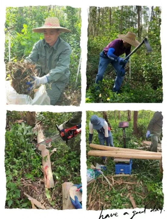 營林一線工人在沉香基地進(jìn)行人工除草除藤