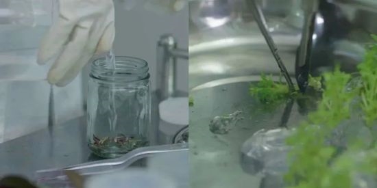 科研人員對萌芽條進(jìn)行消毒滅菌處理