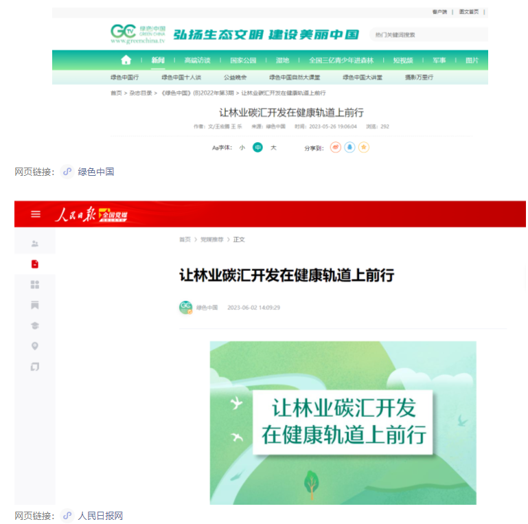 日前,國(guó)家林業(yè)和草原局主管的《綠色中國(guó)》雜志對(duì)中林林碳公司進(jìn)行了采訪,并發(fā)布了題為《讓林業(yè)碳匯開(kāi)發(fā)在健康軌道上前行》的文章。人民日?qǐng)?bào)、今日頭條等多家數(shù)字媒體平臺(tái)相繼轉(zhuǎn)發(fā)報(bào)道此篇文章,受到各界廣泛關(guān)注并在業(yè)內(nèi)引發(fā)極大反響。