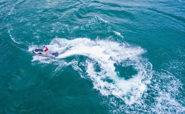 船舶在浪的跳動波的閃光中