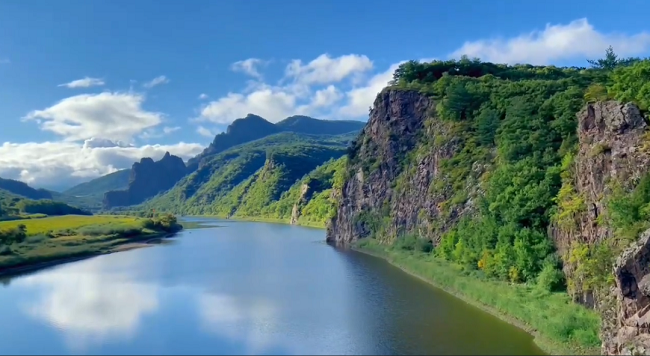 綠水映照青山
