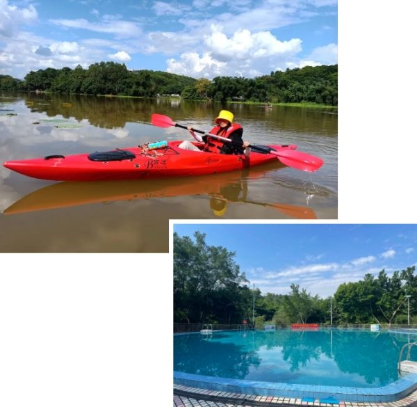 或者在泳池中、在鳳江上盡情地享受游泳、槳板、獨(dú)木舟等水上運(yùn)動(dòng)
