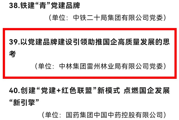 8月9日,國(guó)企黨建研究公眾號(hào)揭曉了2023年度“國(guó)企黨建品牌建設(shè)優(yōu)秀案例”征集推選名單,雷林公司黨委《以黨建品牌建設(shè)引領(lǐng)助推國(guó)企高質(zhì)量發(fā)展的思考》案例入選,名列在研究、經(jīng)驗(yàn)類(lèi)第39篇。(具體文章見(jiàn)附件)