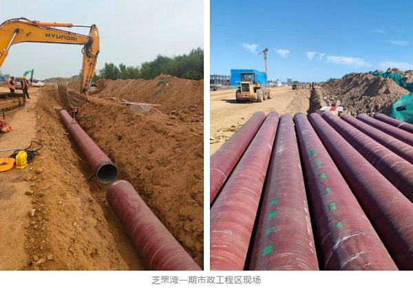 近日,中林集團所屬中林鑫宙公司指導生產(chǎn)的DN600竹纏繞復合管道在山東省煙臺市芝罘區(qū)芝罘灣一期市政工程建設中正式開始敷設。
