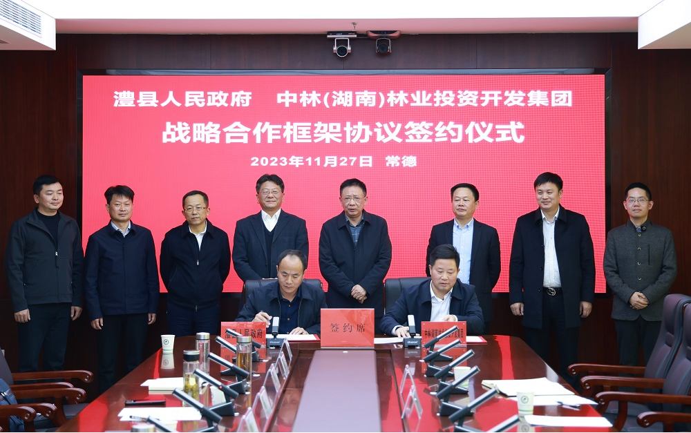 11月27日,中林集團所屬中林湘投公司與湖南省常德市鼎城區(qū)、澧縣、臨澧縣分別簽署《國家儲備林建設戰(zhàn)略合作框架協(xié)議》。