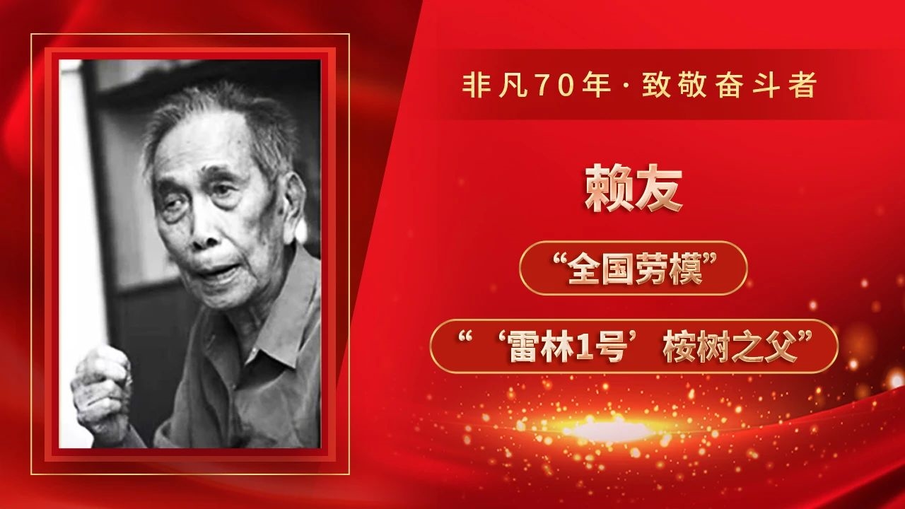 賴友何許人也?上世紀(jì)30年代的擔(dān)鹽工,飽受鹽商欺壓和剝削;上世紀(jì)40年代,成為進(jìn)步青年參加革命運動;1954年,作為省林科院技術(shù)人員支援粵西林場(雷林公司),投身“綠化雷州半島”建設(shè);1979年,因桉樹科研成績突出,被授予“全國勞動模范”稱號,成為雷林公司全國勞模第一人。