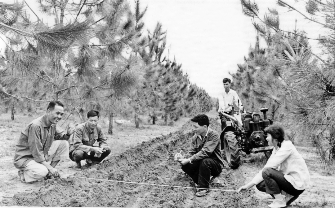 昔日的雷州半島,赤地千里。初創(chuàng)時期,雷林人頂烈日迎風(fēng)沙,肩挑手提,風(fēng)餐露宿,墾荒造林。他們按照“適地適樹”的原則,大力推廣桉樹種植,僅10年間種植林木近80萬畝,發(fā)展成為我國南方較大的桉樹人工林基地。1963年2月,時任中共中央副主席、全國人大常委會委員長朱德到雷林視察,對雷林人艱苦創(chuàng)業(yè)的事跡給予高度肯定;1963年9月,時任國務(wù)院副總理的賀龍剛從印度尼西亞訪問回來就來到湛江視察南三島林帶,并將訪問帶回的白樹油樹(千層桉類)種子贈給雷林林科所試種;1960年6月、1962年5月,時任中共中央中南局書記陶鑄到雷林視察;1993年,時任國家林業(yè)部部長徐有芳到雷林視察并題詞,贊譽(yù)雷林為“粵西綠色明珠”。