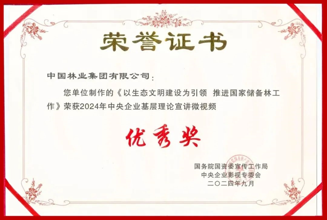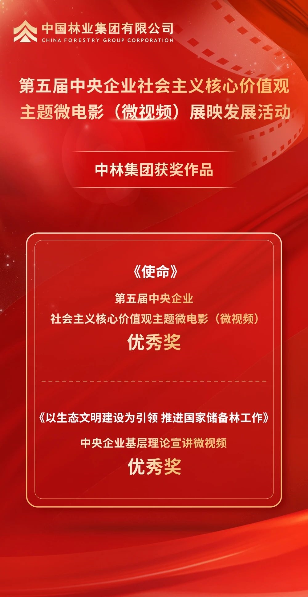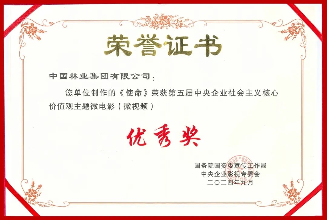 9月27日,在新中國75周年華誕到來之際,國務(wù)院國資委在京舉行中央企業(yè)社會主義核心價值觀主題微電影(微視頻)展映發(fā)布活動?;顒蝇F(xiàn)場發(fā)布了初心使命、愛黨報國、敬業(yè)奉獻、社會責(zé)任等四個主題100部優(yōu)秀作品以及中央企業(yè)基層理論宣講100部優(yōu)秀微視頻。其中,中國林業(yè)集團選送的兩部作品——《使命》榮獲第五屆中央企業(yè)社會主義核心價值觀主題微電影(微視頻)優(yōu)秀獎;《以生態(tài)文明建設(shè)為引領(lǐng) 推進國家儲備林工作》榮獲2024年中央企業(yè)基層理論宣講微視頻優(yōu)秀獎。