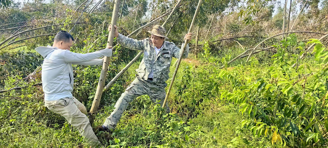 臺風(fēng),是地處沿海地區(qū)的湛江林業(yè)必須面對的一大挑戰(zhàn)。在應(yīng)對2011年17號臺風(fēng)“納莎”的抗災(zāi)復(fù)產(chǎn)過程中,楊林清與護(hù)林人員不知有多少個(gè)日夜守候在林地。為了把臺風(fēng)造成的損失降到最低,他帶領(lǐng)職工群眾想盡辦法搶扶倒伏幼林,常常忙到下午兩三點(diǎn)鐘才吃中午飯,披星戴月下班是家常便飯,但他從來不叫苦,默默地堅(jiān)持著。在這次抗災(zāi)復(fù)產(chǎn)中,楊林清和隊(duì)友們共扶風(fēng)倒幼林6237畝,拾回風(fēng)倒木材16噸,最大程度減少了集體經(jīng)濟(jì)損失。