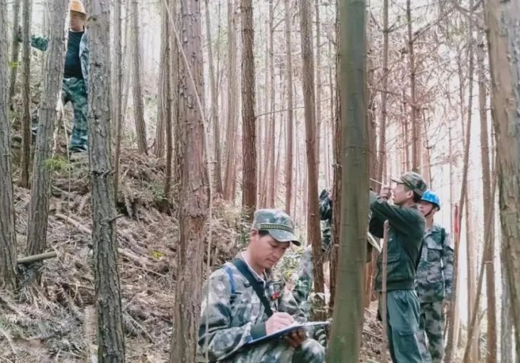 泰寧林區(qū)員工正在用角規(guī)測(cè)樹調(diào)查