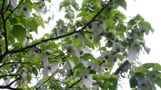 珙桐為落葉喬木,樹高可達(dá)15-20米。葉片呈稍偏斜的倒心形,邊緣有鋸齒,先端驟尖, 有時(shí)候形成修長(zhǎng)的尾尖,十分飄逸。珙桐每年從4月中旬到5月上中旬開花, 花期可長(zhǎng)達(dá)5個(gè)月,珙桐開花時(shí),遠(yuǎn)遠(yuǎn)看去像棲息了滿樹的白鴿子在風(fēng)中展翅,因此有“鴿子樹”之名。珙桐在10月份前后進(jìn)入果期,果實(shí)呈棕色長(zhǎng)卵圓形,果柄粗壯,一個(gè)個(gè)倒掛在樹上,就像一個(gè)個(gè)褐色的小梨。葉子脫落后,果實(shí)還會(huì)宿存在樹端,十分顯眼,這便是珙桐“水梨子”一名的由來。