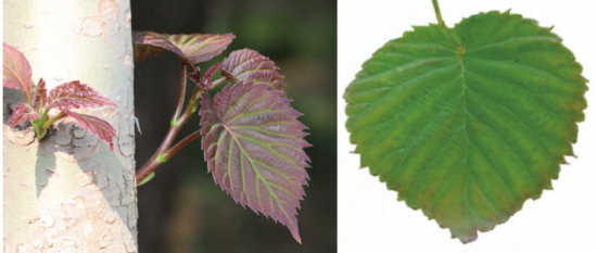珙桐紫紅色的新生葉 正面的綠色珙桐葉
