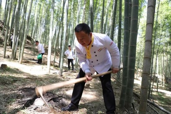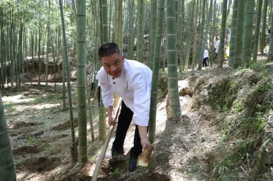 “筍出徽州六邑,以問(wèn)政山者味尤佳”?;顒?dòng)中,大廚們前往問(wèn)政山現(xiàn)場(chǎng),飛舞著鋤頭,探尋“山中珍寶”,滿載而歸。