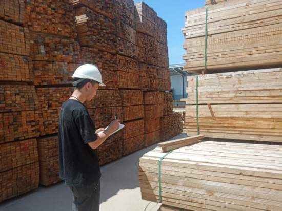 精化每道工序 嚴(yán)控產(chǎn)品規(guī)格 林場(chǎng)集團(tuán)所屬上海川汨境外加工廠板材車間員工正在統(tǒng)計(jì)板材件數(shù),通過(guò)件數(shù)測(cè)算板材體積(立方米),隨時(shí)監(jiān)控產(chǎn)品的計(jì)件數(shù)據(jù),便于后期的倉(cāng)儲(chǔ)管理。認(rèn)真對(duì)待每一道工序,打造“中林好木材”。(攝影:侯兆強(qiáng))