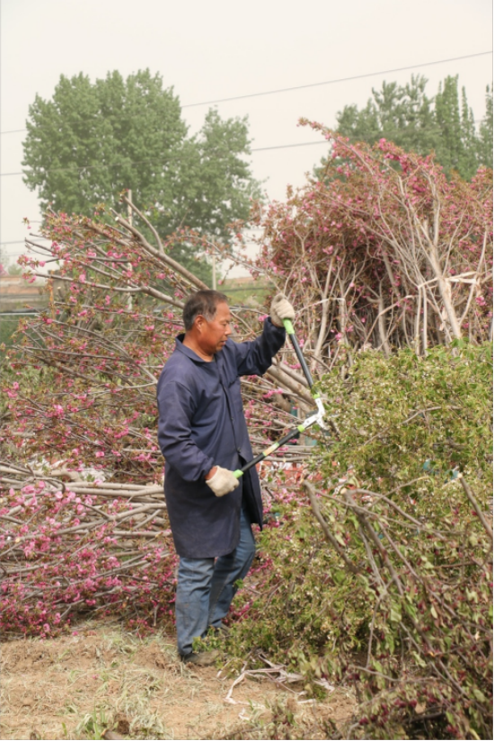 生態(tài)修復(fù) 嚴(yán)控品質(zhì) 林場(chǎng)集團(tuán)所屬中林生態(tài)環(huán)境科技有限公司一線員工在修剪即將栽植的喬木,對(duì)喬木的干枯枝、病蟲枝和過(guò)密枝條進(jìn)行精細(xì)化、科學(xué)化修剪,疏枝疏葉,改善樹(shù)木通風(fēng)透光條件,減少移栽后樹(shù)木的水分蒸發(fā)量,提高其抗風(fēng)能力和美觀度。(攝影: 張旭)