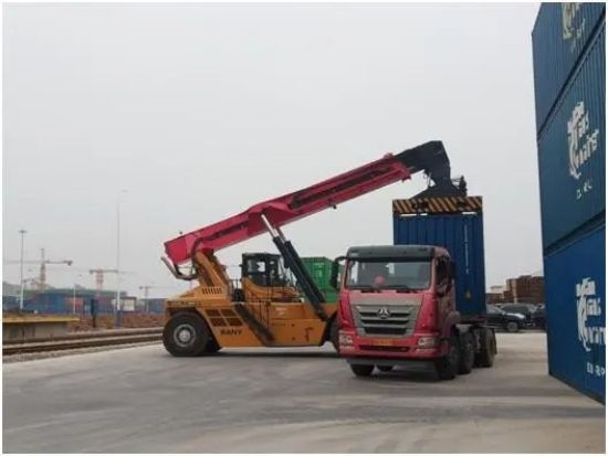 現(xiàn)場部吊車司機(jī)(卸貨員)將已運(yùn)達(dá)至貨場的空箱進(jìn)行卸貨