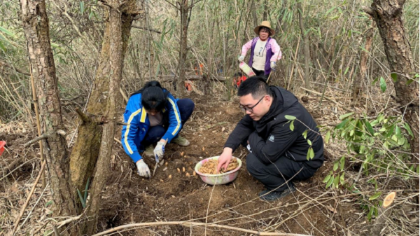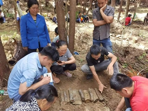 技術(shù)人員在天麻種植基地現(xiàn)場指導(dǎo)規(guī)范放置菌種