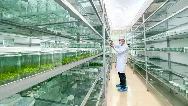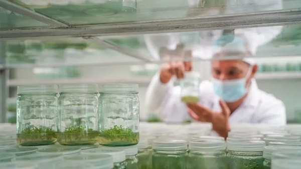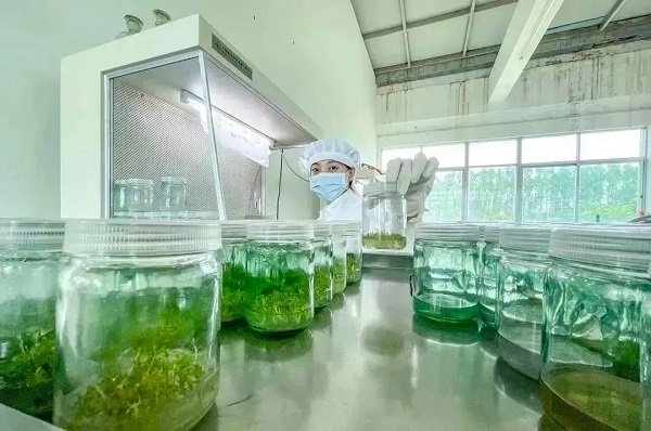 在中林雷林公司屬下林業(yè)科學(xué)研究分公司研發(fā)中心無菌室的組培瓶內(nèi),一簇簇幼苗吐著嫩綠的芽兒;無菌室外的苗圃基地里,一畦畦紅紅綠綠的樹苗舒展著枝葉,接受著陽光雨露的洗禮……
