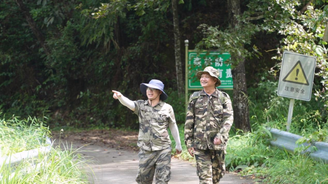 肖秋明(右)在林地里巡查