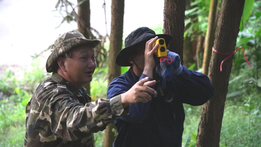肖秋明給年輕隊員講授林木調查知識