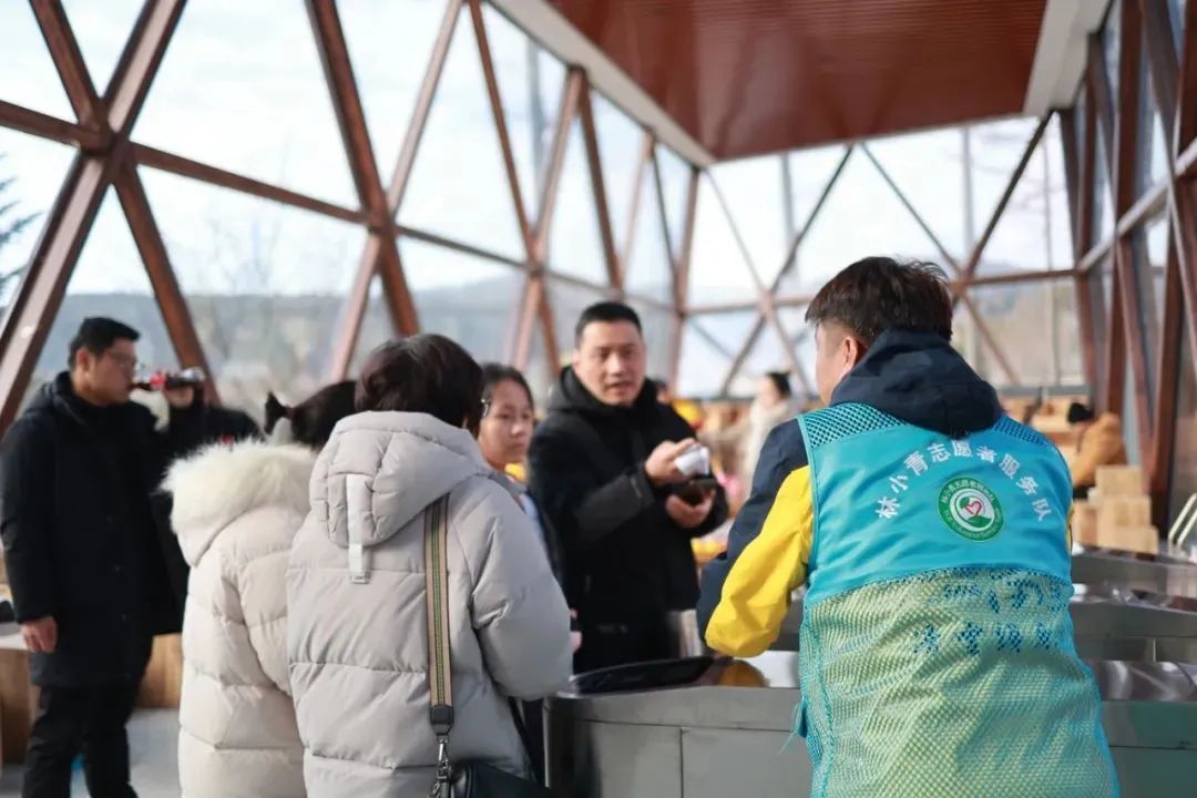 “林小青志愿者服務(wù)隊”隊員們身著亮藍色馬甲,成為了中林·商量崗景區(qū)一道靚麗的風景線。服務(wù)隊沿著中央廣場、冬瓜湖、無邊森境、滑雪場等景區(qū)景點,擦亮景區(qū)標識牌;通過張貼文明旅游倡議書,樹立文明旅游新風尚,助推文明城市創(chuàng)建;定期舉辦消防安全類知識宣貫,宣貫消防安全、森林防火等文件精神;在游客集中的區(qū)域設(shè)立服務(wù)人員示范崗,為游客和工作人員提供精心熬制的免費姜茶。
