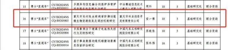 近日,中林集團(tuán)所屬重慶林投公司結(jié)合主責(zé)主業(yè),加大科技創(chuàng)新力度,成功申請(qǐng)公司首個(gè)重慶市博士“直通車”項(xiàng)目。此次立項(xiàng)的重慶市博士“直通車”項(xiàng)目共19項(xiàng),涉及電力、汽車、生物、電子產(chǎn)品制造、軍工等9個(gè)行業(yè),重慶林投公司“重慶市松材線蟲病病害防御功能微生物資源收集及調(diào)控機(jī)制研究”項(xiàng)目作為唯一的林業(yè)行業(yè)項(xiàng)目成功立項(xiàng)。