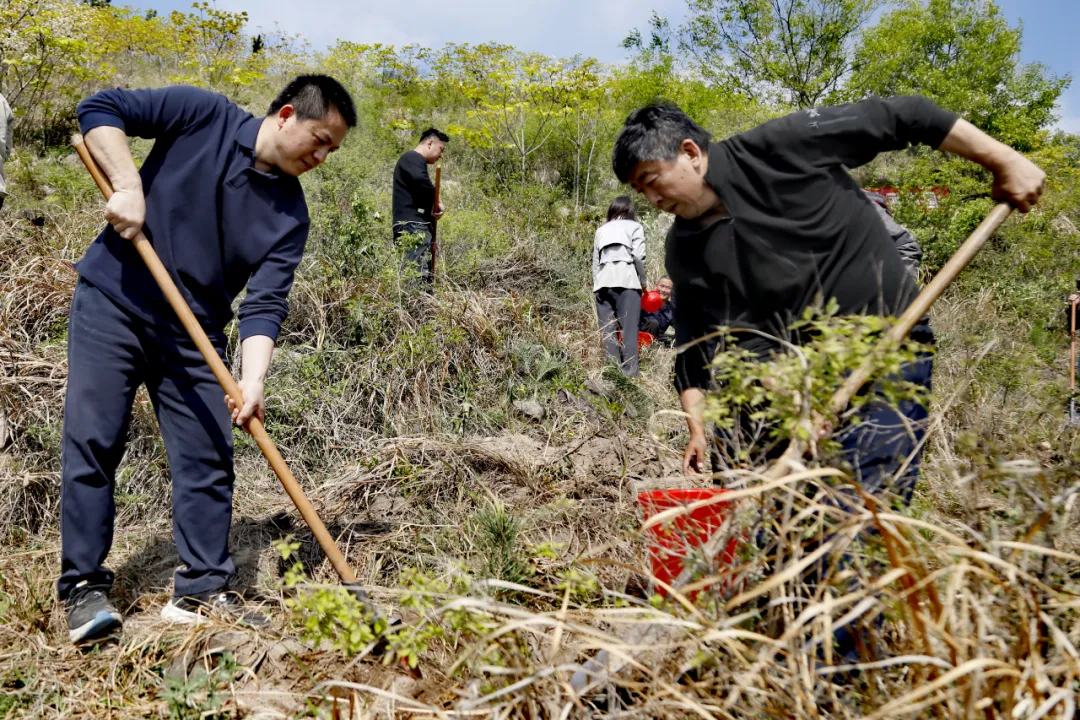 4月12日上午,在河南信陽(yáng)淮河上游天目山退化林補(bǔ)植修復(fù)項(xiàng)目現(xiàn)場(chǎng),集團(tuán)公司黨委書記、董事長(zhǎng)、總經(jīng)理單忠立,黨委委員、副總經(jīng)理李留彬,信陽(yáng)市委常委、副市長(zhǎng)李俊和大家三五一組,手持鐵鍬、水桶等工具來(lái)到植樹區(qū)域,揮鍬刨坑、扶苗培土、提水澆灌、平整踩實(shí)……大家悉心栽種著黑松、麻櫟等苗木,現(xiàn)場(chǎng)一派熱火朝天的景象。經(jīng)過(guò)一個(gè)多小時(shí)的辛勤勞動(dòng),一株株“新生”的苗木“安家落戶”,在微風(fēng)吹拂下,煥發(fā)出勃勃生機(jī)。