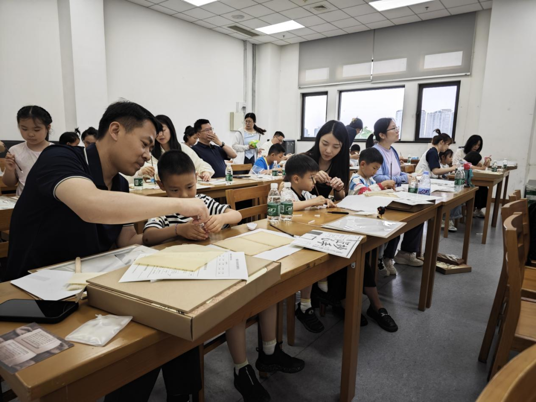 在“小手護(hù)古籍”的匠心體驗活動中,國圖創(chuàng)新資深古籍修復(fù)老師為大家講授了古籍修復(fù)技藝對于書籍發(fā)展史和中華傳統(tǒng)文化傳承的重要意義,并現(xiàn)場指導(dǎo)孩子們親手進(jìn)行書頁修補(bǔ),體驗古籍修復(fù)過程,以更加直觀、生動的方式,感受古籍傳達(dá)出的歷史文化價值,領(lǐng)略古籍修復(fù)這項國家級非物質(zhì)文化遺產(chǎn)的魅力。