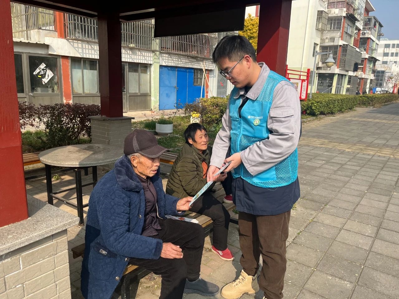 志愿者們走進商鋪,向商家發(fā)放《消防安全手冊》《垃圾分類手冊》并進行耐心講解。